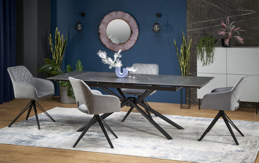 Tiziano bővíthető étkezőasztal szürke színű márványmintás asztallappal és különleges lábakkal...